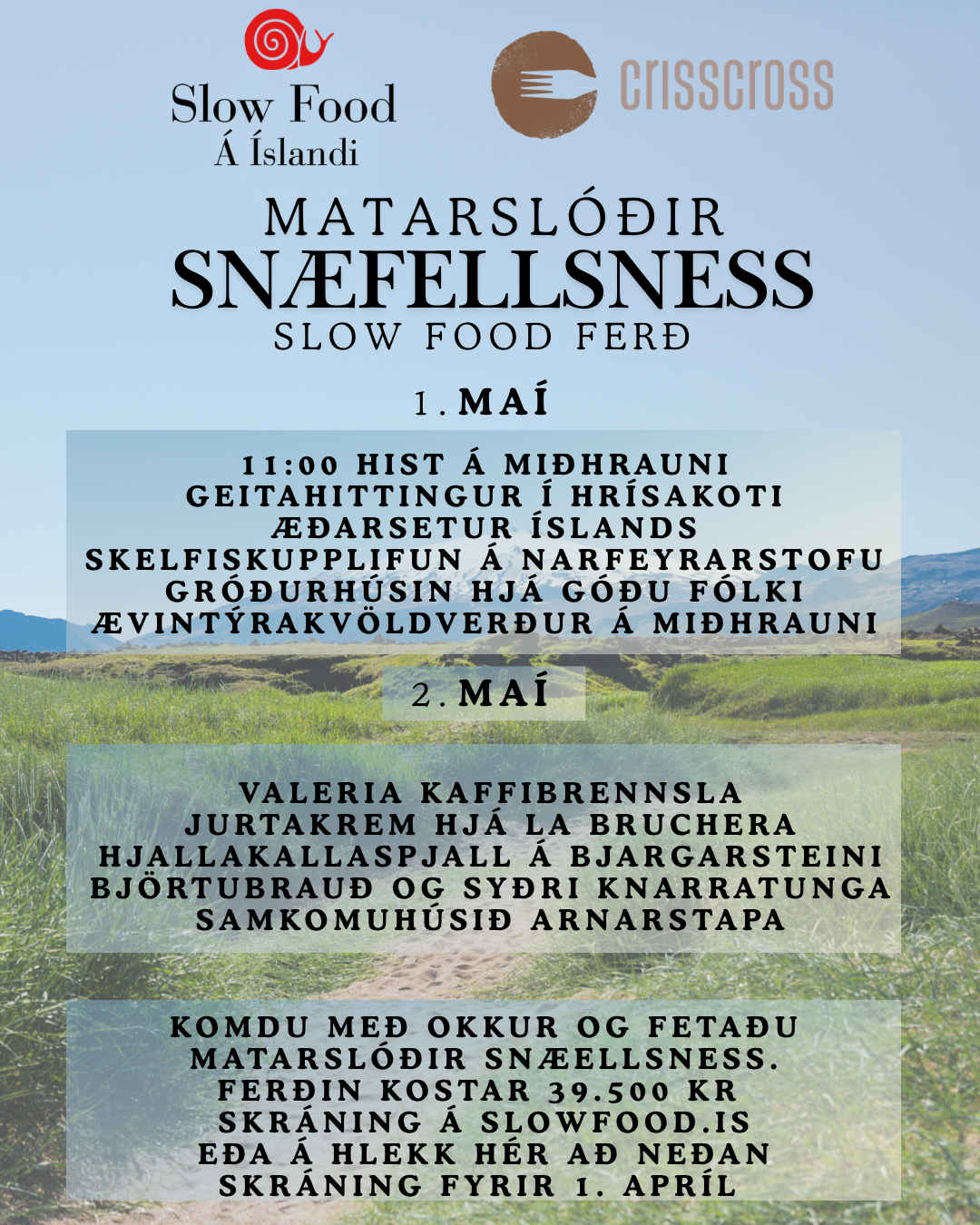 Viðburðurinn er samstarfsverkefni Slow Food á Íslandi, Crisscross matarferða og Svæðisgarðsins á Snæfellsnesi.